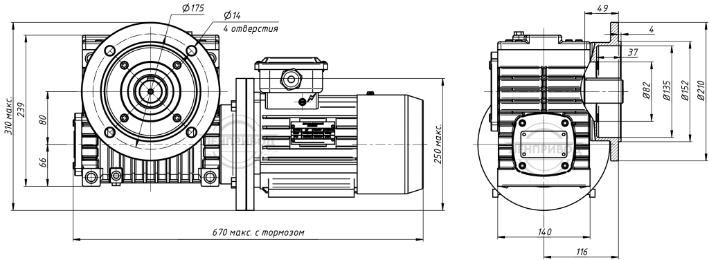 | Масса с электродвигателем без тормоза, кг | 36,5 | 36,5 | 36,5 | 36,5 | 36,5 | 36,5 | 36,5 | 32 | 30 | 30 | 36,5 | 36,5 | 32 | 32 |