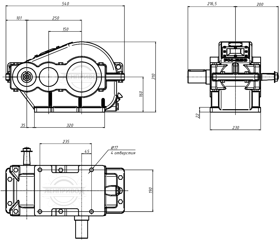 Цилиндрический двухступенчатый горизонтальный редуктор РМ-250 — самый компактный редуктор из серии РМ. Усиленный литой корпус редуктора позволяет эксплуатацию в условиях, где требуется гарантия запаса прочности.