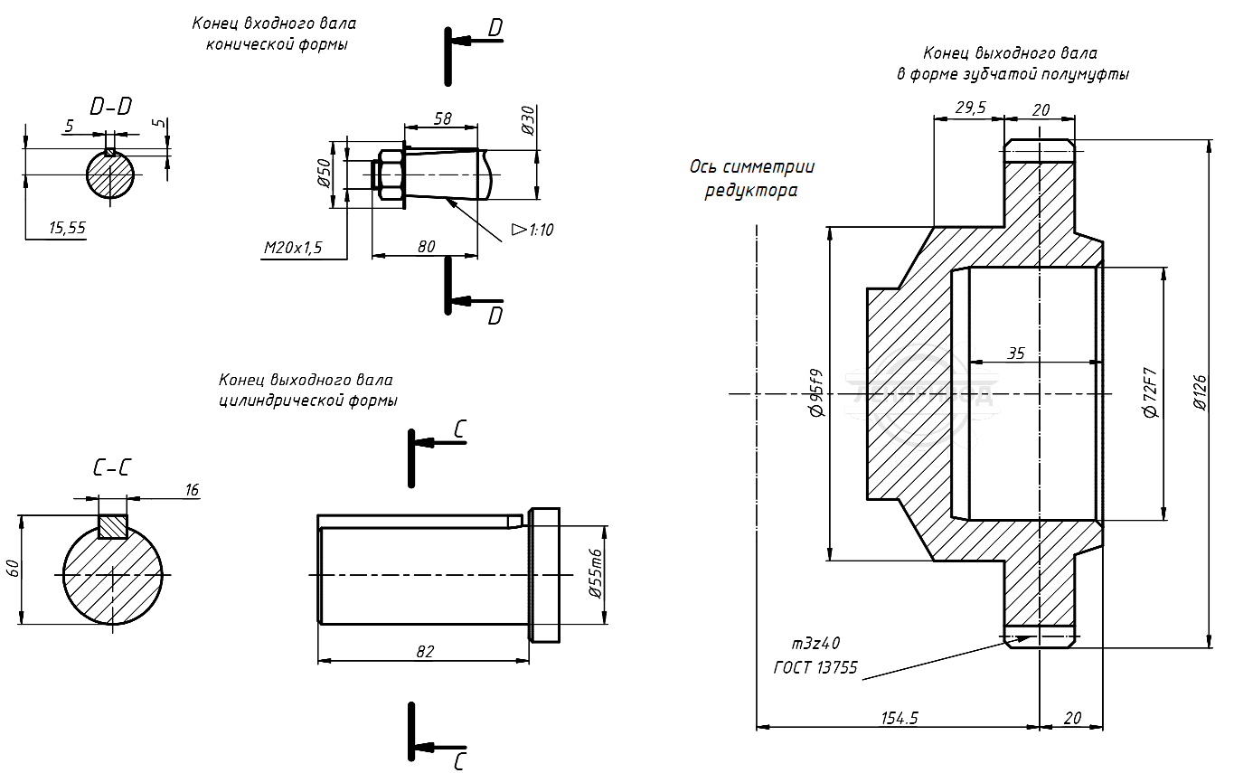 Номинальные передаточные числа: 8; 10 12,5; 16; 20; 25; 31,5; 40; 50.