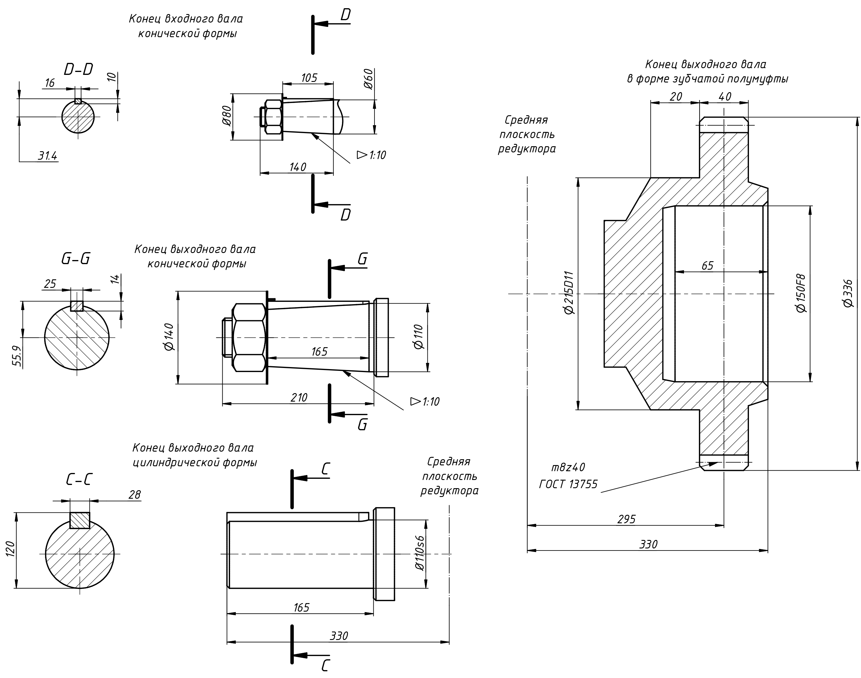 Номинальные передаточные числа: 8; 10 12,5; 16; 20; 25; 31,5; 40; 50.